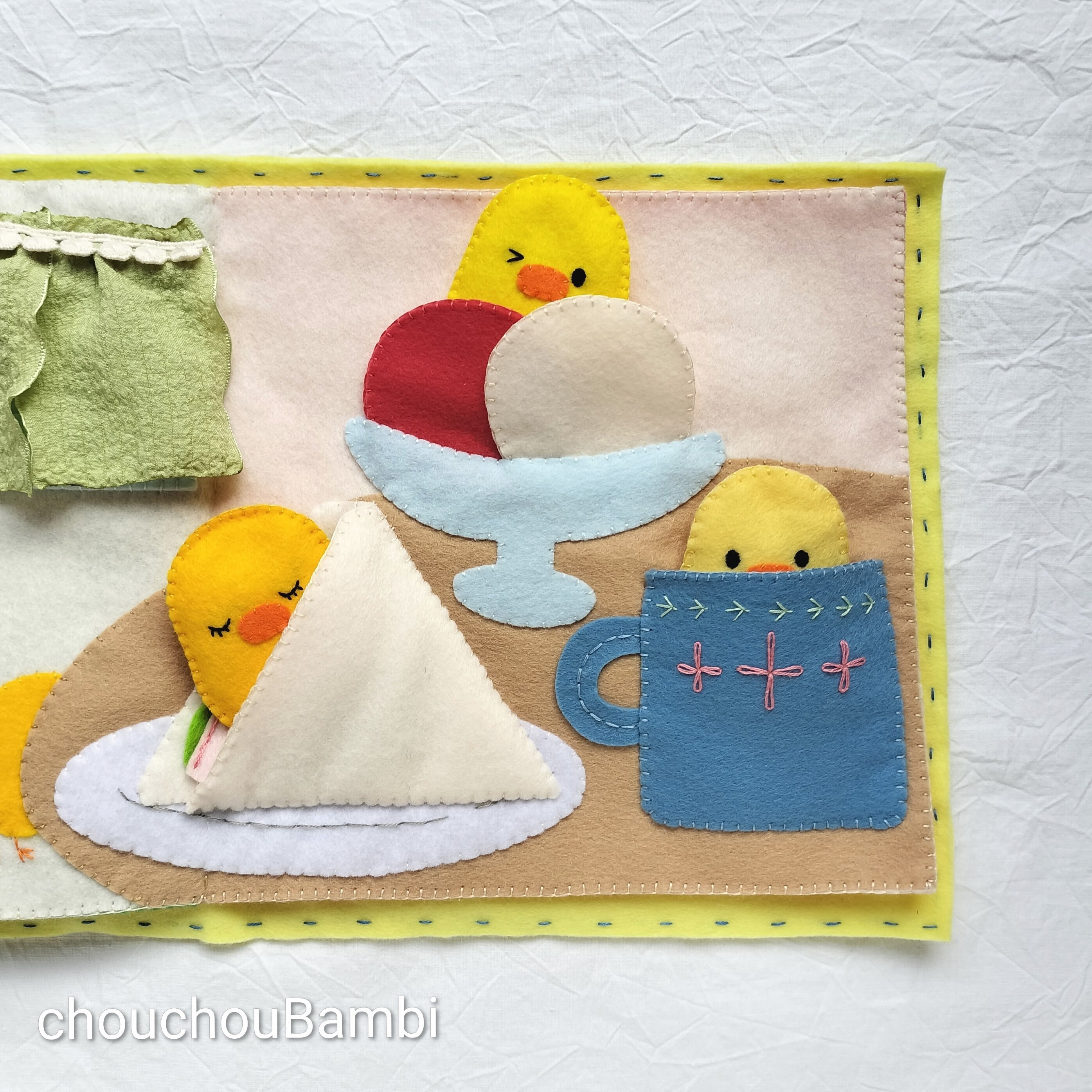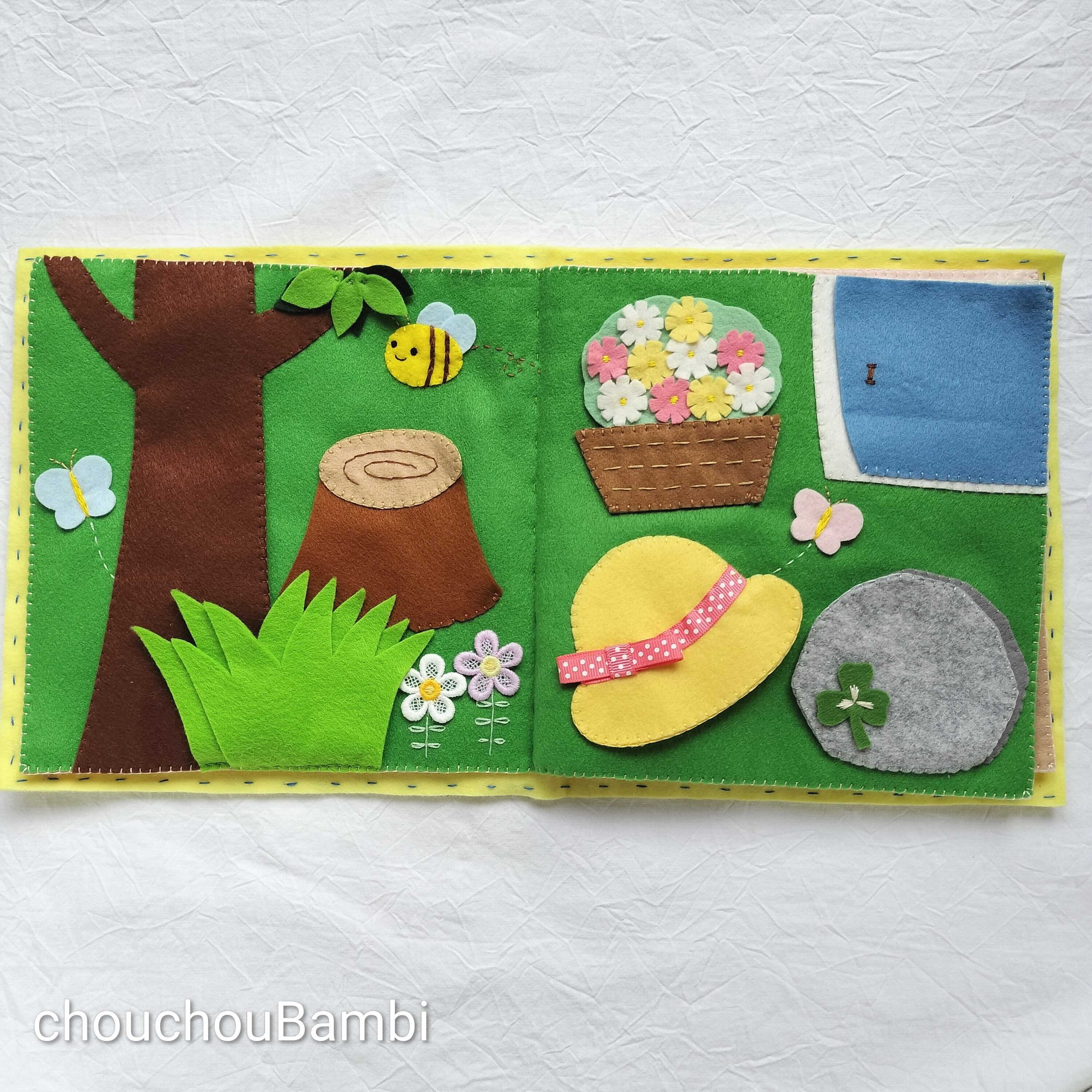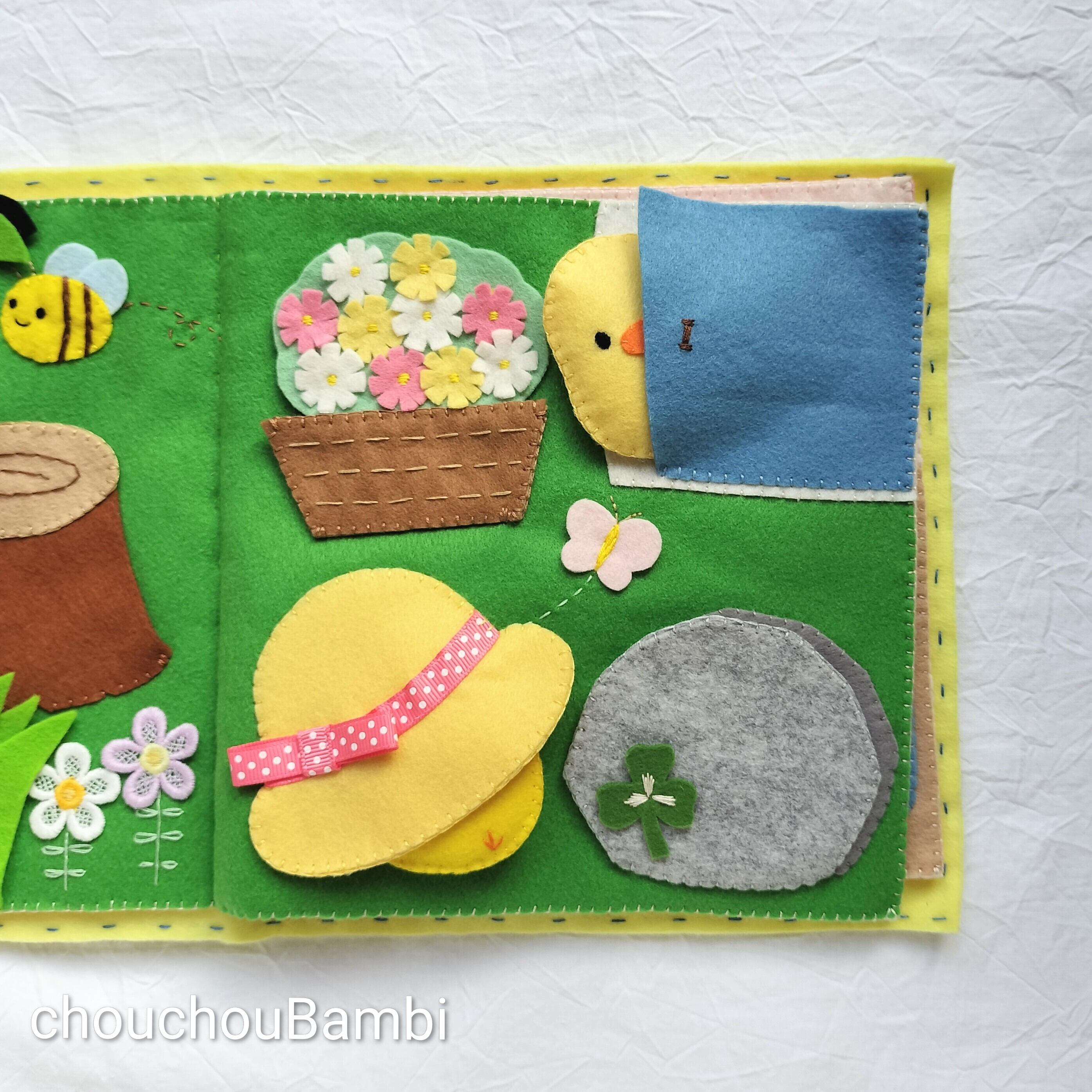 23cm角6ページのフェルト布絵本『かくれんぼ』